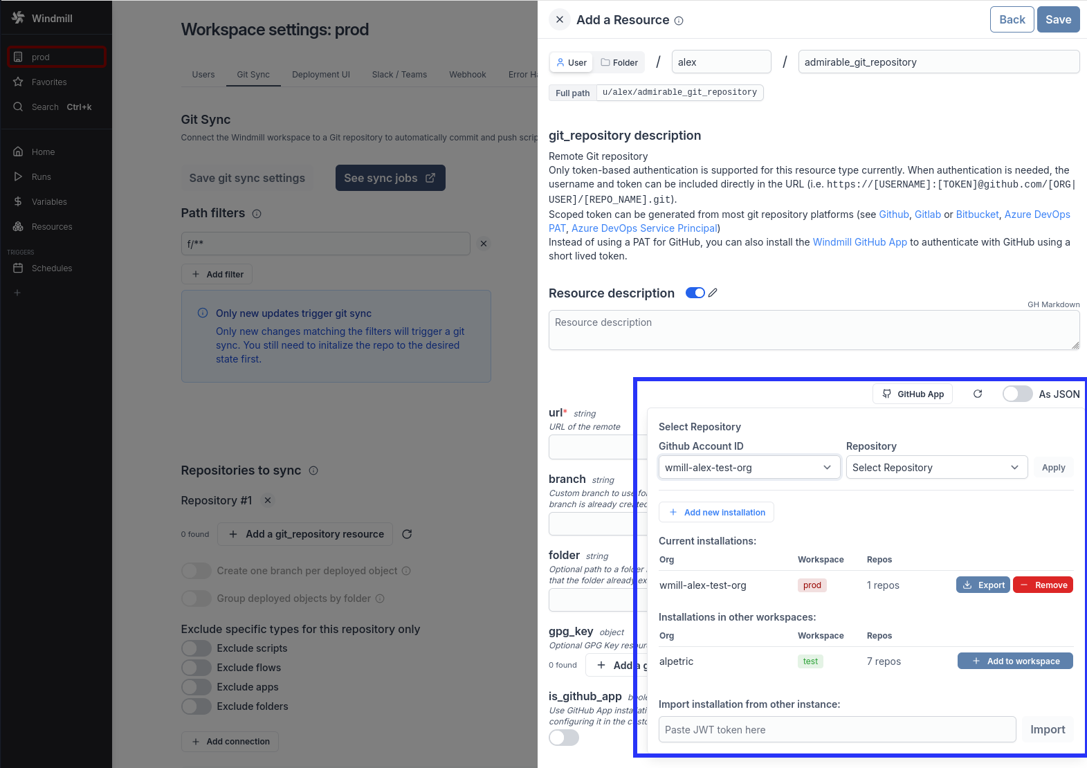 Improved git sync initialization, workspace settings UI controls, and branch-specific configuration management with improved CLI commands.