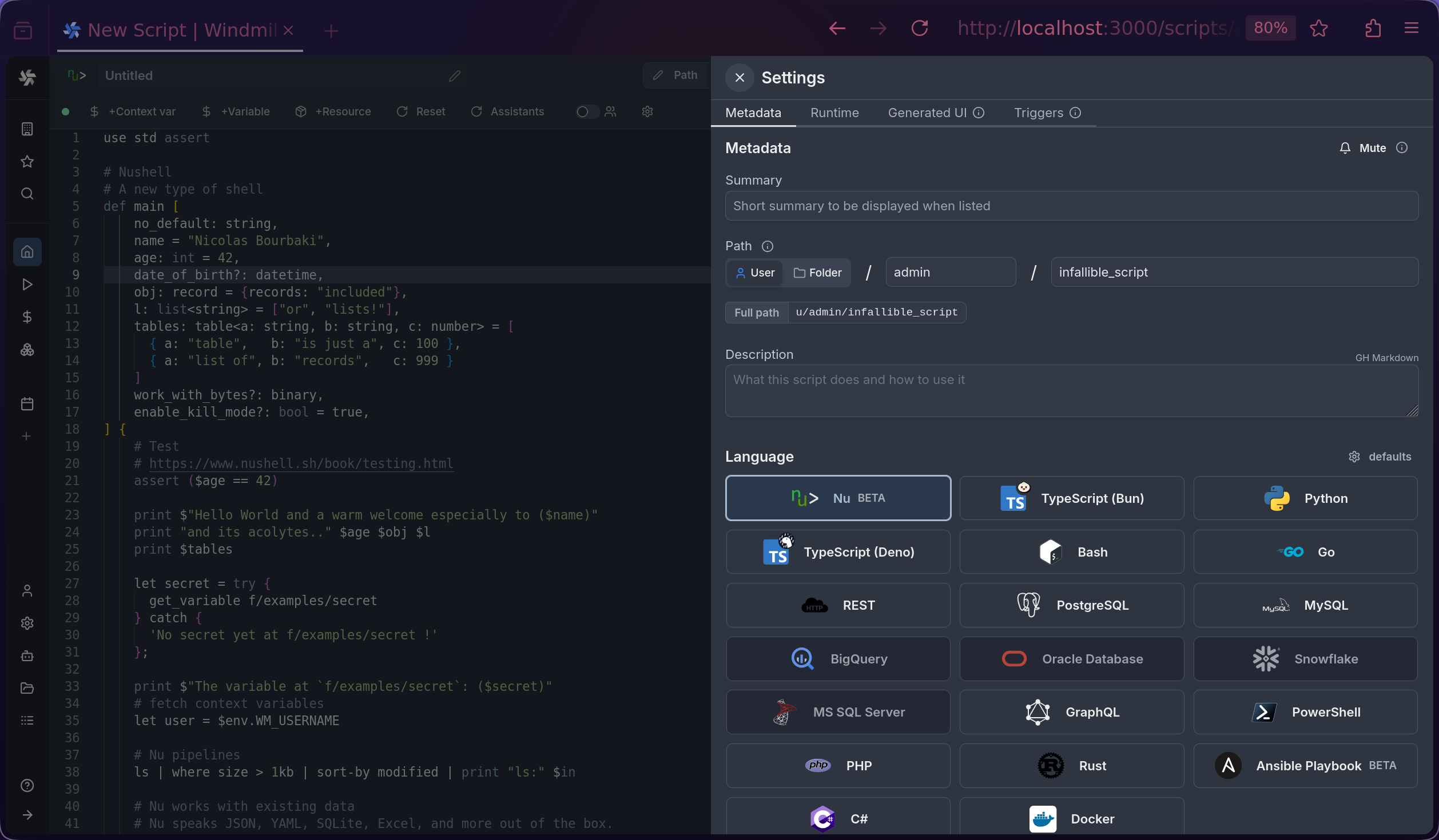 Windmill provides a true NodeJS compatibility mode using Bun. This means that you can run your existing NodeJS code without any modifications. Only comment //nodejs